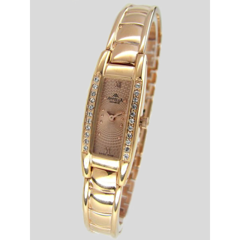 Женские наручные Appella часы. Корпус и браслет с позолотой, сапфировым стеклом. Корпус украшен крис..