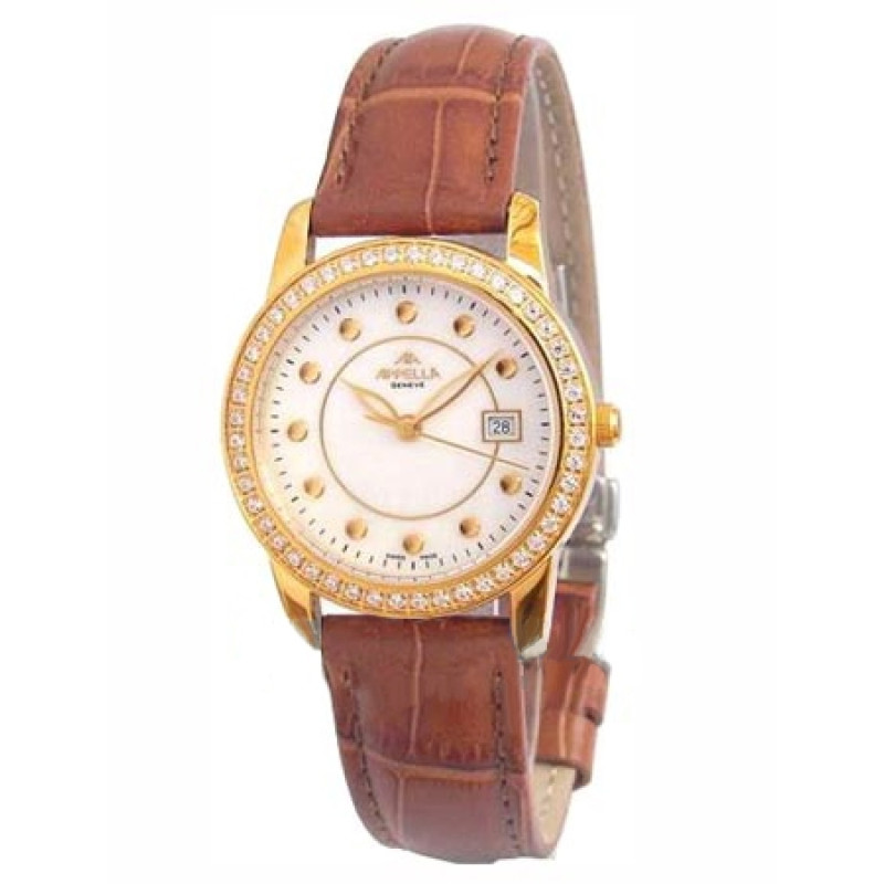 Женские наручные Appella часы. Позолоченный корпус с сапфировым стеклом, украшен фианитами...