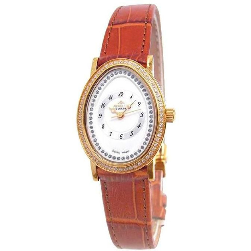 Женские наручные Appella часы. Позолоченный корпус с сапфировым стеклом, украшен кристаллами Swarovs..