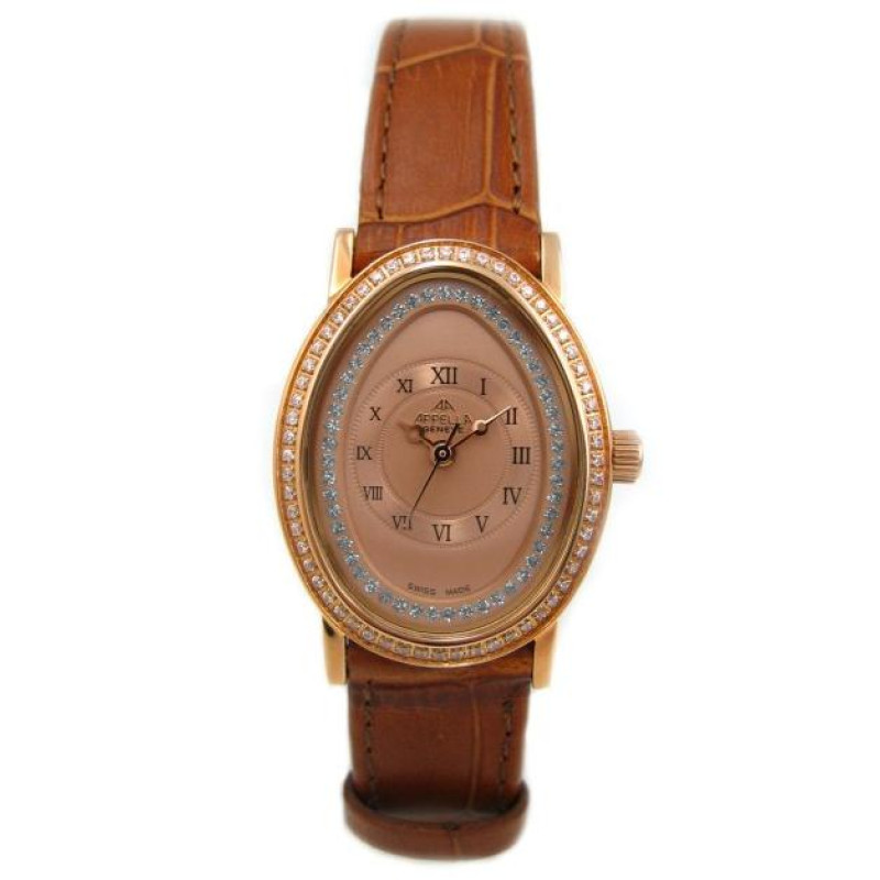 Женские наручные Appella часы. Корпус, покрытый розовым золотом, с сапфировым стеклом, украшен крист..