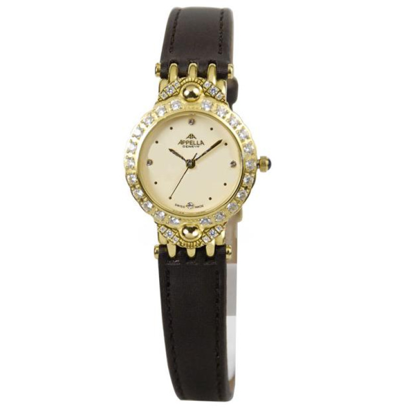 Женские наручные Appella часы. Позолоченный корпус с сапфировым стеклом. Корпус украшен кристаллами ..