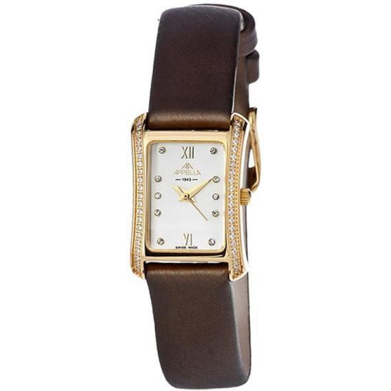 Женские наручные Appella часы. Позолоченный корпус с сапфировым стеклом, украшен фианитами...