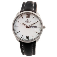 Калибр механизма: Ronda 762. Корпус выполнен из стали. Черный кожаный ремешок. Цвет циферблата - бел..