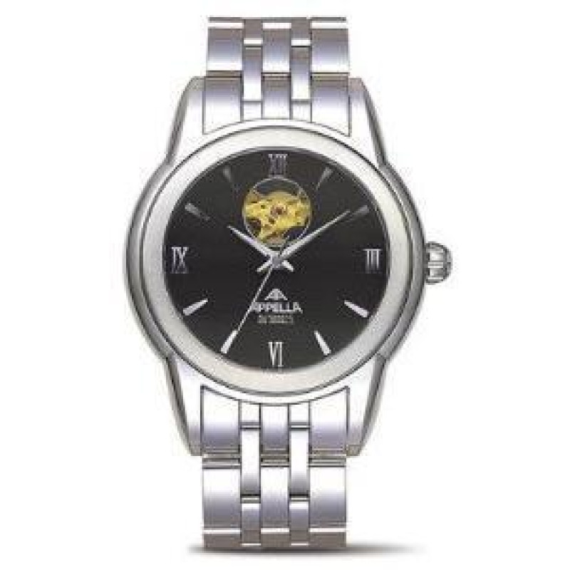Модель Appella A-497-3004 имеет частично открытый механизм, который видно через открытое окошко на циферблате. Данные часы отлично смотрятся под деловой костюм, поэтому их выбирают серьезные и стильные мужчины.