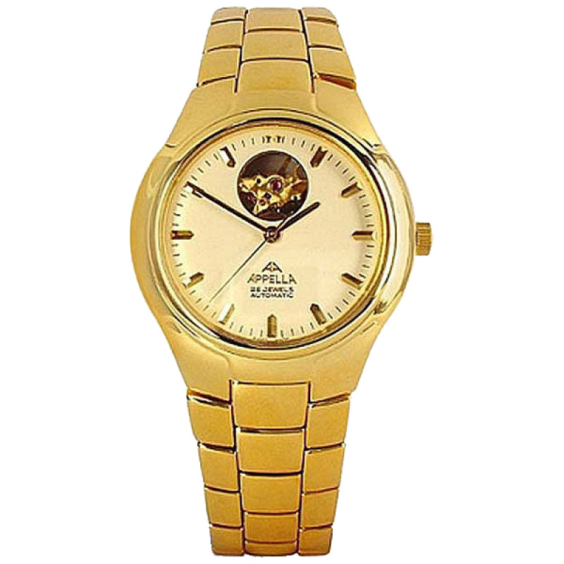 Модель Appella A-507-1002 имеет частично открытый механизм, который видно через открытое окошко на циферблате. Данные часы отлично смотрятся под деловой костюм, поэтому их выбирают серьезные и стильные мужчины.