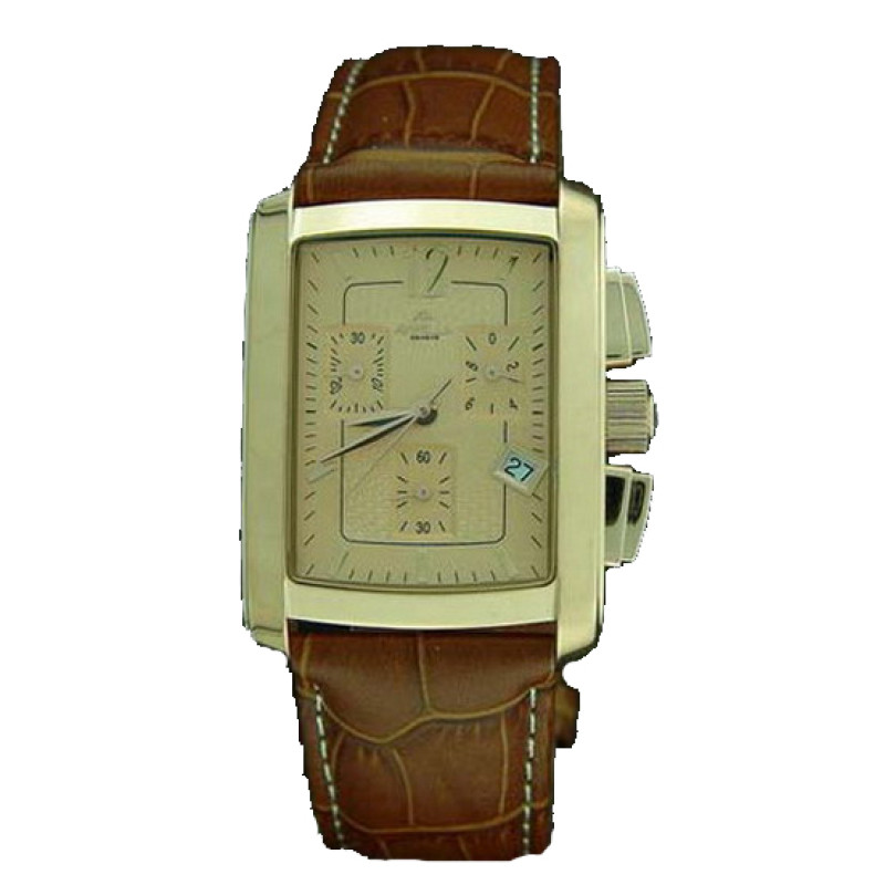 Модель имеет водонепроницаемость 30 м. Корпус выполнен из материала – сталь + PVD. Прочное сапфировое стекло надежно защищает циферблат от ударов и других повреждений. Удобный кожаный ремешок позволяет часам комфортно сидеть на запястье. Из дополнительных функций имеются: дата, хронограф.