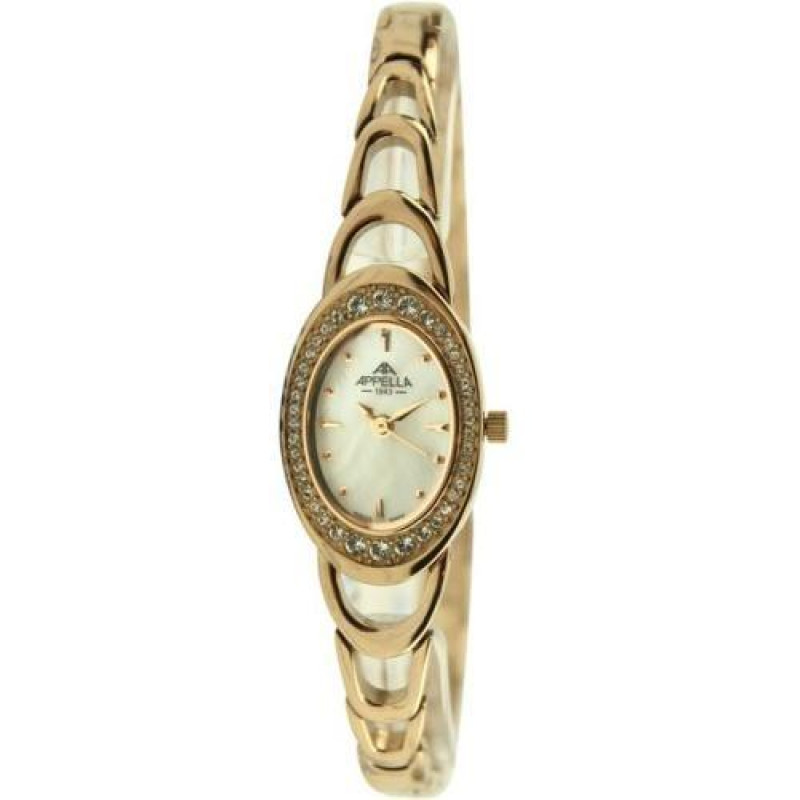 Женские наручные Appella часы. Позолоченный корпус с сапфировым стеклом, украшен цирконами. Перламут..