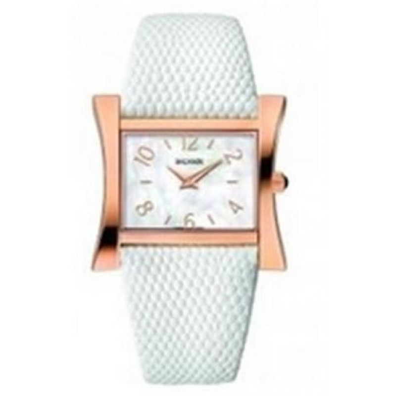 Корпус выполнен из стали с полным PVD покрытием цвета розового золота. Белый кожаный ремешок. Циферб..