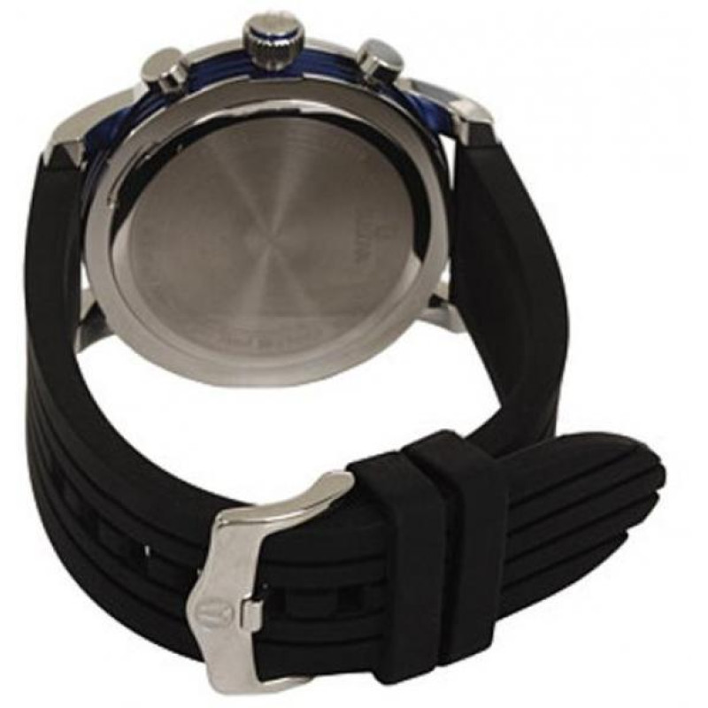 Модель имеет водонепроницаемость 50 м. Корпус выполнен из материала – сталь. Прочное минеральное стекло надежно защищает циферблат от ударов и других повреждений. Удобный каучук ремешок позволяет часам комфортно сидеть на запястье. Из дополнительных функций имеются: дата, дополнительный показатель времени в 24-х часовом формате, минуты, секунды, хронограф, часы.