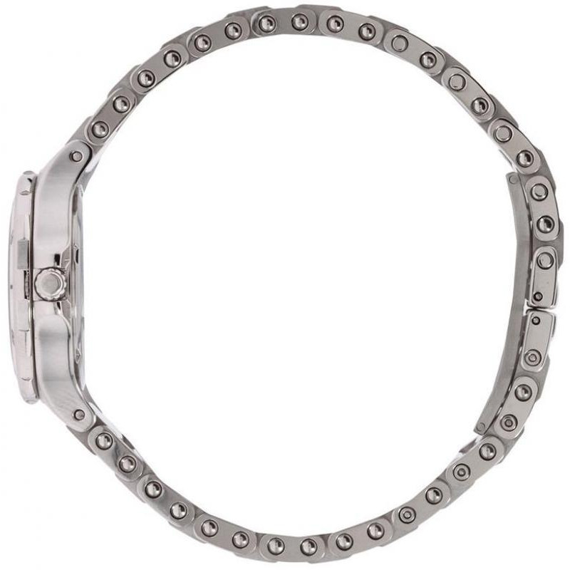 Модель имеет водонепроницаемость 30 м. Корпус выполнен из материала – комбинированный (сталь/керамика). Прочное минеральное стекло надежно защищает циферблат от ударов и других повреждений. Удобный сталь + керамика браслет позволяет часам комфортно сидеть на запястье. Из дополнительных функций имеются: минуты, секунды, часы.
