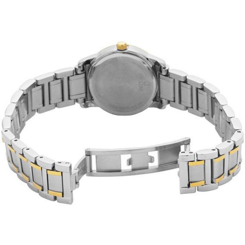Модель имеет водонепроницаемость 30 м. Корпус выполнен из материала – сталь + PVD. Прочное минеральное стекло надежно защищает циферблат от ударов и других повреждений. Удобный сталь + PVD браслет позволяет часам комфортно сидеть на запястье. Из дополнительных функций имеются: дата, минуты, секунды, часы.