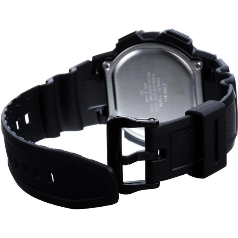 Модель имеет водонепроницаемость 100 м. Корпус выполнен из материала – полимер и сталь. Прочное пластиковое стекло надежно защищает циферблат от ударов и других повреждений. Удобный полимер ремешок позволяет часам комфортно сидеть на запястье. Из дополнительных функций имеются: 12 и 24-часовой формат времени, автоматический календарь, мировое время, мульти-сигнал, светодиодная подсветка, секундомер, таймер обратного отсчёта.