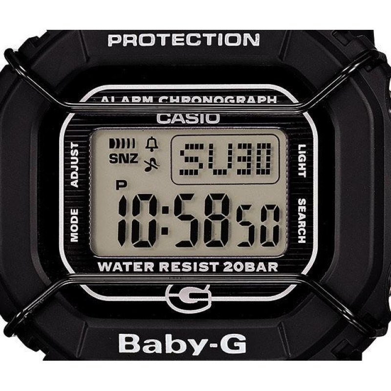 Модель имеет водонепроницаемость 200 м. Корпус выполнен из материала – пластик. Прочное минеральное стекло надежно защищает циферблат от ударов и других повреждений. Удобный полимер ремешок позволяет часам комфортно сидеть на запястье. Из дополнительных функций имеются: 1/100-с секундомер, 12 и 24-часовой формат времени, 5 будильников, автоматический календарь, дата, двойной Illuminator, ежедневный сигнал, ежечасный сигнал, мировое время, противоударные, секунды, таймер обратного отсчёта, функция включения/отключения звука, функция повтора сигнала.