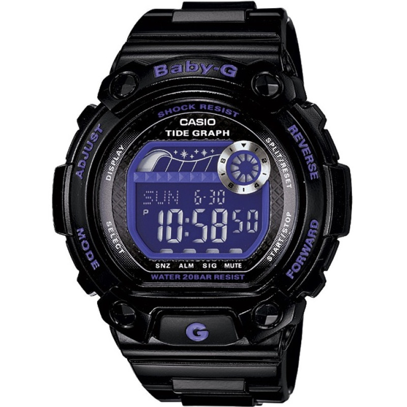 Модель имеет водонепроницаемость 200 м. Корпус выполнен из материала – полимер. Прочное минеральное стекло надежно защищает циферблат от ударов и других повреждений. Удобный полимер ремешок позволяет часам комфортно сидеть на запястье. Из дополнительных функций имеются: 1/100-с секундомер, 3 будильника, календарь, мировое время, отображение таблицы приливов-отливов, таймер, электролюминесцентная подсветка.