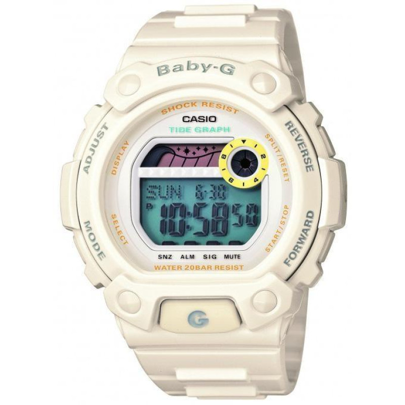 Модель имеет водонепроницаемость 200 м. Корпус выполнен из материала – полимер. Прочное минеральное стекло надежно защищает циферблат от ударов и других повреждений. Удобный полимер ремешок позволяет часам комфортно сидеть на запястье. Из дополнительных функций имеются: 1/100-с секундомер, 12 и 24-часовой формат времени, 3 будильника, LED индикатор, автоматический календарь, дата, ежедневный сигнал, ежечасный сигнал, минуты, мировое время, отображение таблицы приливов-отливов, противоударные, секунды, таймер обратного отсчёта, функция включения/отключения звука, функция повтора сигнала, часы, электролюминесцентная подсветка.