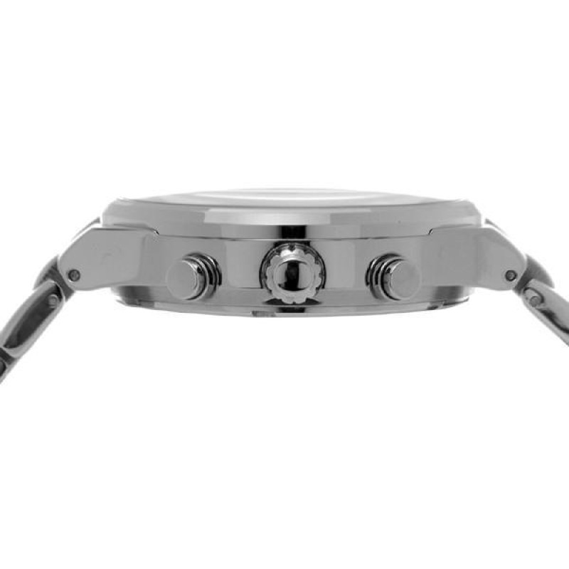 Модель имеет водонепроницаемость 100 м. Корпус выполнен из материала – сталь. Прочное минеральное стекло надежно защищает циферблат от ударов и других повреждений. Удобный стальной браслет позволяет часам комфортно сидеть на запястье. Из дополнительных функций имеются: дата, хронограф.