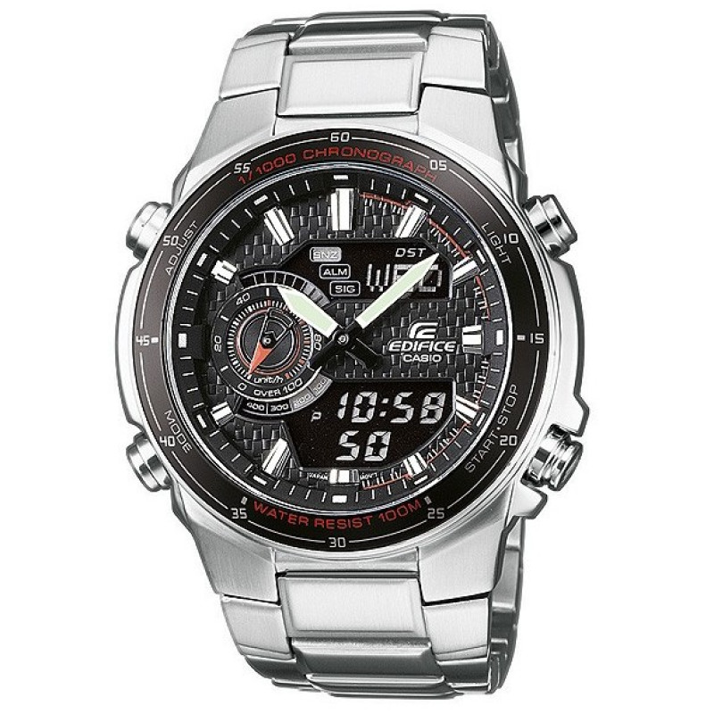 Модель имеет водонепроницаемость 100 м. Корпус выполнен из материала – сталь. Прочное минеральное стекло надежно защищает циферблат от ударов и других повреждений. Удобный стальной браслет позволяет часам комфортно сидеть на запястье. Из дополнительных функций имеются: 1/1000-с секундомер, 12 и 24-часовой формат времени, 5 будильников, автоматический календарь, мировое время, светодиодная подсветка, таймер обратного отсчёта, функция повтора сигнала.