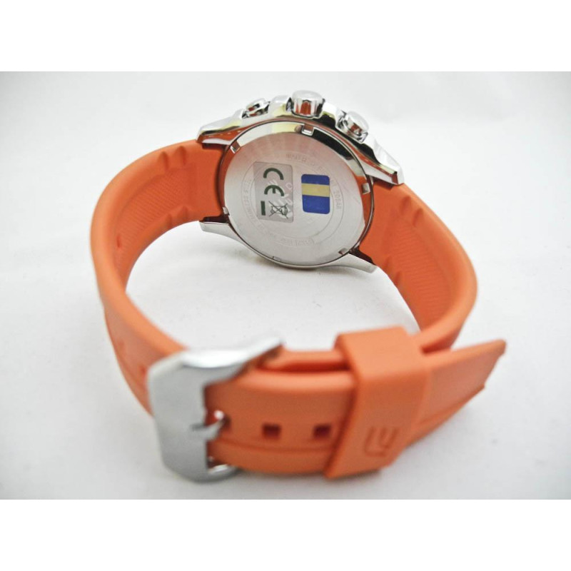 Модель имеет водонепроницаемость 200 м. Корпус выполнен из материала – сталь + PVD. Прочное минеральное стекло надежно защищает циферблат от ударов и других повреждений. Удобный каучук ремешок позволяет часам комфортно сидеть на запястье. Из дополнительных функций имеются: вращающийся безель, дата, дополнительный показатель времени в 24-х часовом формате, минуты, необрит, секунды, хронограф, часы.