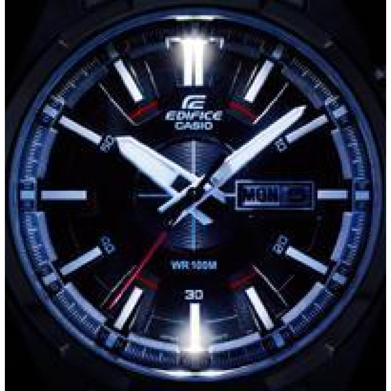 В наручных часах Casio EFR-102-1A3VEF можно принимать душ, плавать. Рыбалка, бассейн, любая работа, при которой запястье контактирует с водой – вашим наручным часам всё нипочём.