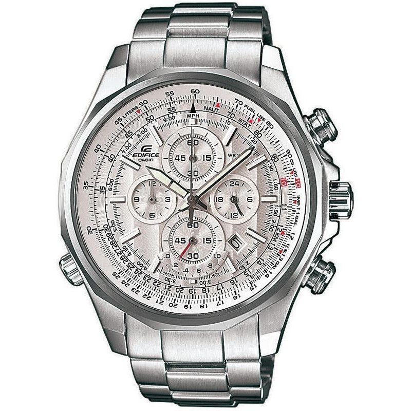 Модель имеет водонепроницаемость 100 м. Корпус выполнен из материала – сталь. Прочное минеральное стекло надежно защищает циферблат от ударов и других повреждений. Удобный стальной браслет позволяет часам комфортно сидеть на запястье. Из дополнительных функций имеются: дата, дополнительный показатель времени в 24-х часовом формате, минуты, необрит, секунды, функция логарифмической линейки, хронограф, часы.