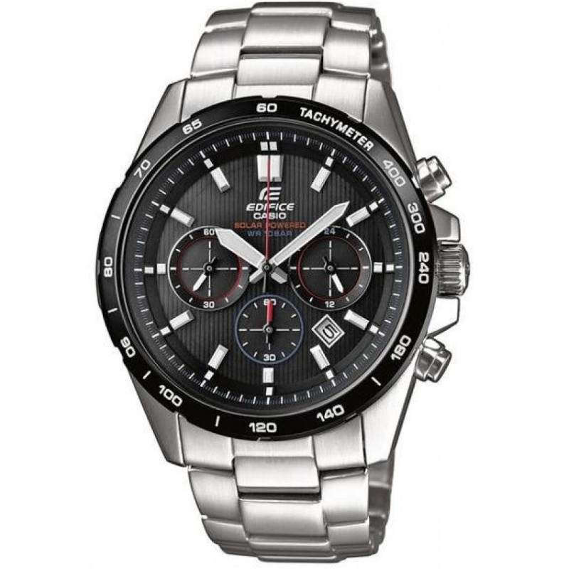 Модель имеет водонепроницаемость 100 м. Корпус выполнен из материала – сталь + PVD. Прочное минеральное стекло надежно защищает циферблат от ударов и других повреждений. Удобный стальной браслет позволяет часам комфортно сидеть на запястье. Из дополнительных функций имеются: дата, минуты, необрит, секунды, солнечная батарея, тахиметр, хронограф, часы.