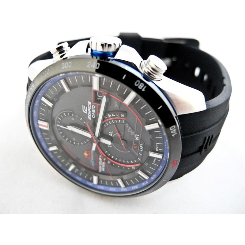 Модель имеет водонепроницаемость 100 м. Корпус выполнен из материала – сталь + PVD. Прочное минеральное стекло надежно защищает циферблат от ударов и других повреждений. Удобный каучук ремешок позволяет часам комфортно сидеть на запястье. Из дополнительных функций имеются: 1/20-с секундомер, автоматический календарь, будильник, дата, день недели, дополнительный показатель времени в 24-х часовом формате, минуты, мировое время, необрит, секунды, солнечная батарея, тахиметр, Технология Smart Accesses, хронограф, часы.