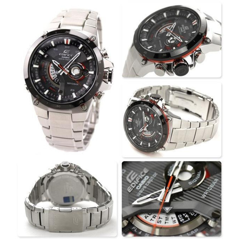 Модель имеет водонепроницаемость 100 м. Корпус выполнен из материала – сталь + PVD. Прочное минеральное стекло надежно защищает циферблат от ударов и других повреждений. Удобный стальной браслет позволяет часам комфортно сидеть на запястье. Из дополнительных функций имеются: 1/20-с секундомер, автоматический календарь, данные о прохождении этапов, дата, день недели, ежедневный сигнал, минуты, мировое время, необрит, прием радиосигнала, секунды, таймер обратного отсчёта, Технология Smart Accesses, часы.