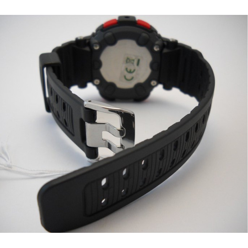 Модель имеет водонепроницаемость 200 м. Корпус выполнен из материала – полимер. Прочное минеральное стекло надежно защищает циферблат от ударов и других повреждений. Удобный полимер ремешок позволяет часам комфортно сидеть на запястье. Из дополнительных функций имеются: 12 и 24-часовой формат времени, LED индикатор, автоматический календарь, данные о прохождении этапов, мировое время, мульти-сигнал, секундомер, таймер обратного отсчёта, функция повтора сигнала.