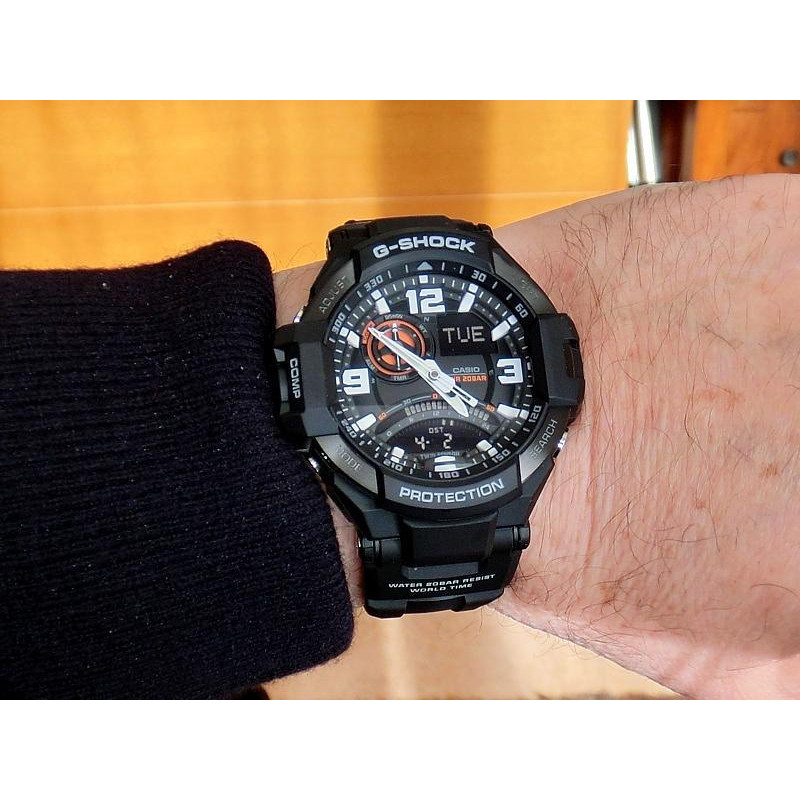 В наручных часах Casio GA-1000-1AER можно принимать душ, плавать. Рыбалка, бассейн, любая работа, при которой запястье контактирует с водой – вашим наручным часам всё нипочём.