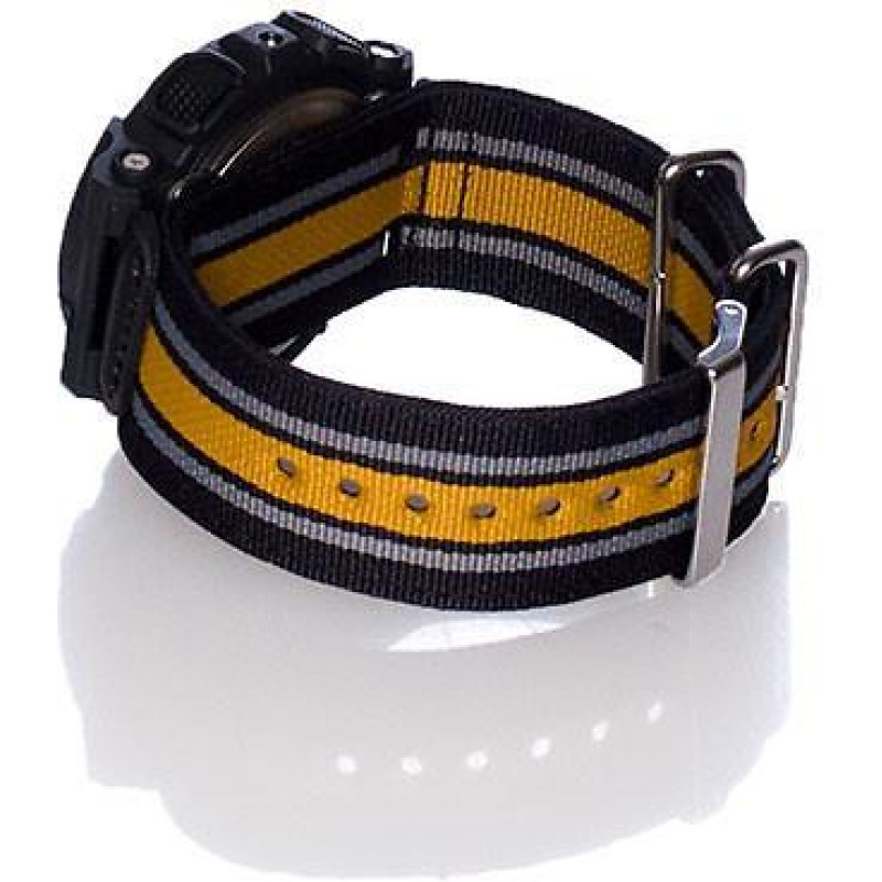 Модель имеет водонепроницаемость 200 м. Корпус выполнен из материала – полимер. Прочное минеральное стекло надежно защищает циферблат от ударов и других повреждений. Удобный тканевый ремешок позволяет часам комфортно сидеть на запястье. Из дополнительных функций имеются: 12 и 24-часовой формат времени, 5 будильников, автоматический календарь, дата, день недели, ежедневный сигнал, ежечасный сигнал, магнитоустойчивые, минуты, противоударные, секунды, супер светодиодная автоподсветка, таймер обратного отсчёта, функция повтора сигнала, часы.