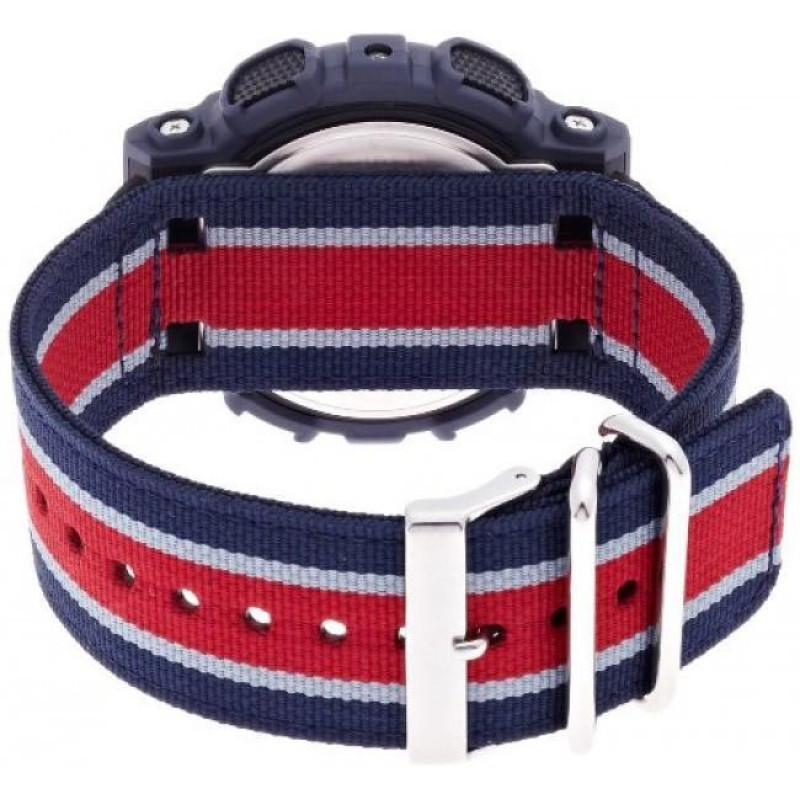 Модель имеет водонепроницаемость 200 м. Корпус выполнен из материала – полимер. Прочное минеральное стекло надежно защищает циферблат от ударов и других повреждений. Удобный тканевый ремешок позволяет часам комфортно сидеть на запястье. Из дополнительных функций имеются: 12 и 24-часовой формат времени, 5 будильников, автоматический календарь, дата, день недели, ежедневный сигнал, ежечасный сигнал, магнитоустойчивые, минуты, противоударные, секунды, супер светодиодная автоподсветка, таймер обратного отсчёта, функция повтора сигнала, часы.
