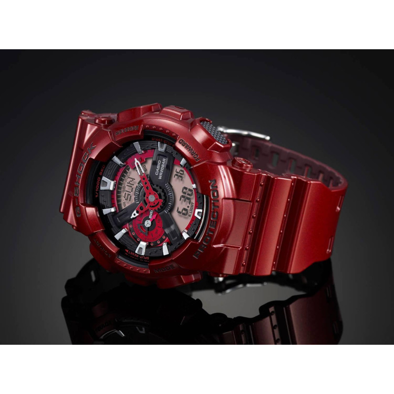 В наручных часах Casio GA-110NM-4AER можно принимать душ, плавать. Рыбалка, бассейн, любая работа, при которой запястье контактирует с водой – вашим наручным часам всё нипочём.