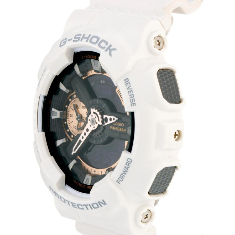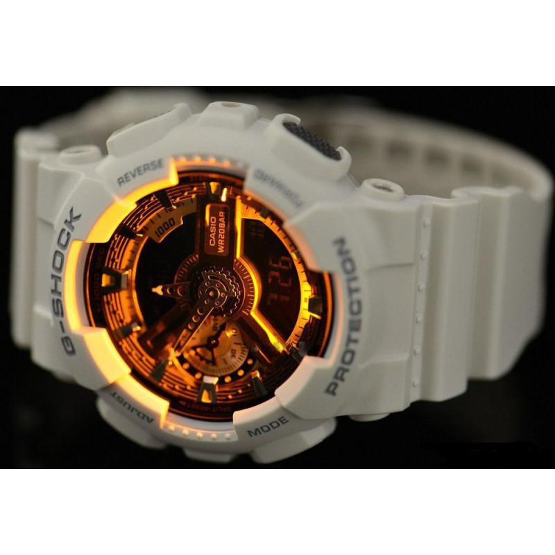 В наручных часах Casio GA-110RG-7AER можно принимать душ, плавать. Рыбалка, бассейн, любая работа, при которой запястье контактирует с водой – вашим наручным часам всё нипочём.