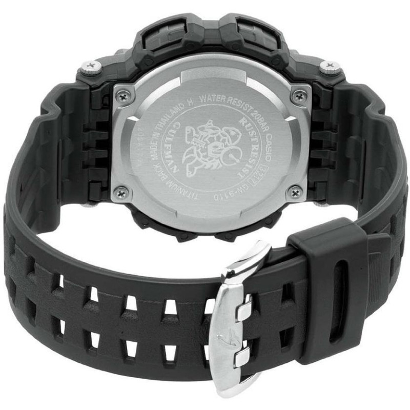 В наручных часах Casio GW-9110-1ER можно принимать душ, плавать. Рыбалка, бассейн, любая работа, при которой запястье контактирует с водой – вашим наручным часам всё нипочём.