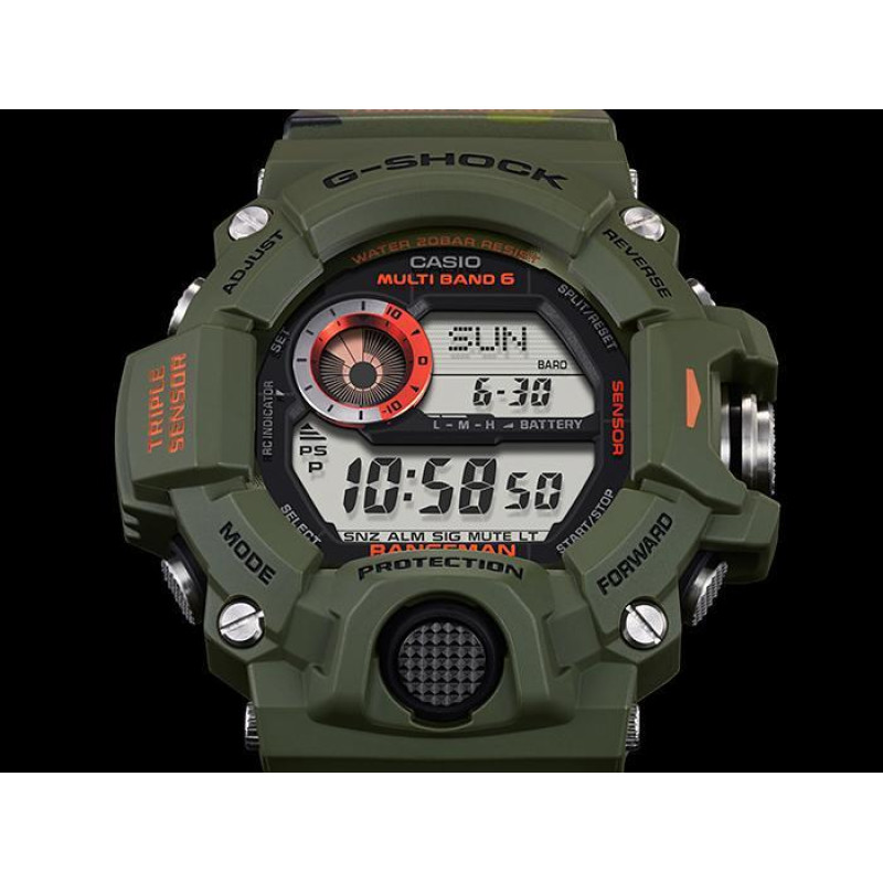 В наручных часах Casio GW-9400CMJ-3ER можно принимать душ, плавать. Рыбалка, бассейн, любая работа, при которой запястье контактирует с водой – вашим наручным часам всё нипочём.