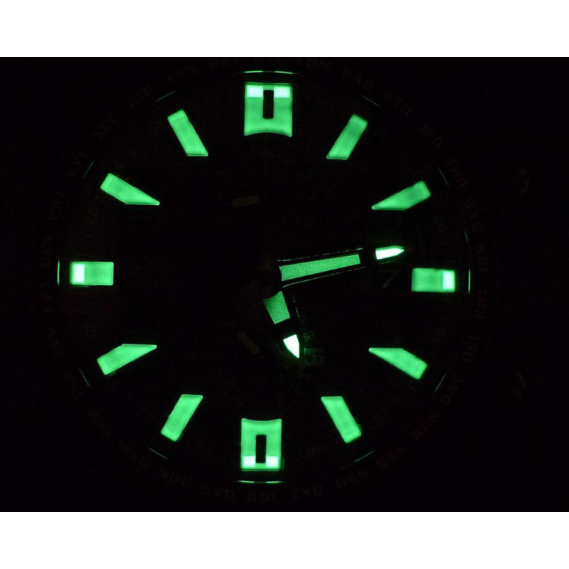 Модель имеет водонепроницаемость 200 м. Корпус выполнен из материала – полимер. Прочное минеральное стекло надежно защищает циферблат от ударов и других повреждений. Удобный полимер ремешок позволяет часам комфортно сидеть на запястье. Из дополнительных функций имеются: 1/20-с секундомер, автоматическая настройка стрелок, автоматический календарь, будильник, дата, день недели, дополнительный показатель времени в 24-х часовом формате, минуты, мировое время, необрит, прием радиосигнала, противоударные, секунды, солнечная батарея, таймер обратного отсчёта, термометр, Технология Smart Accesses, часы.