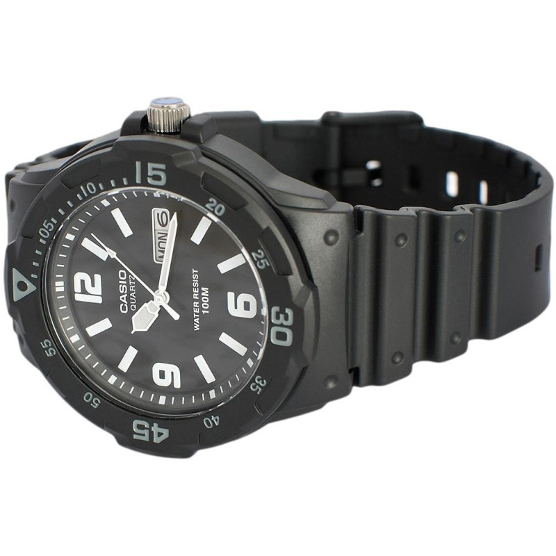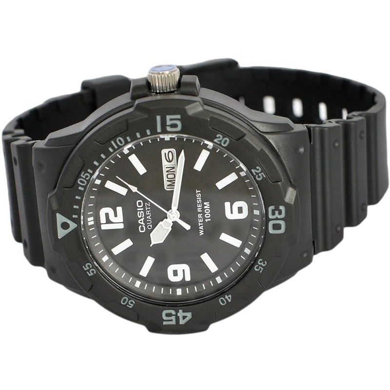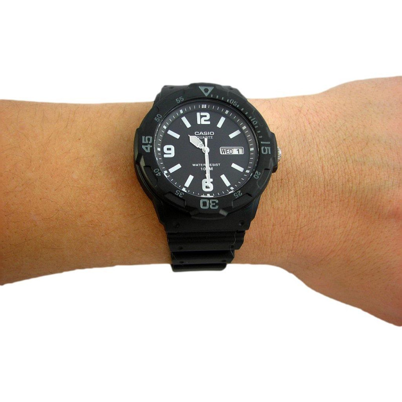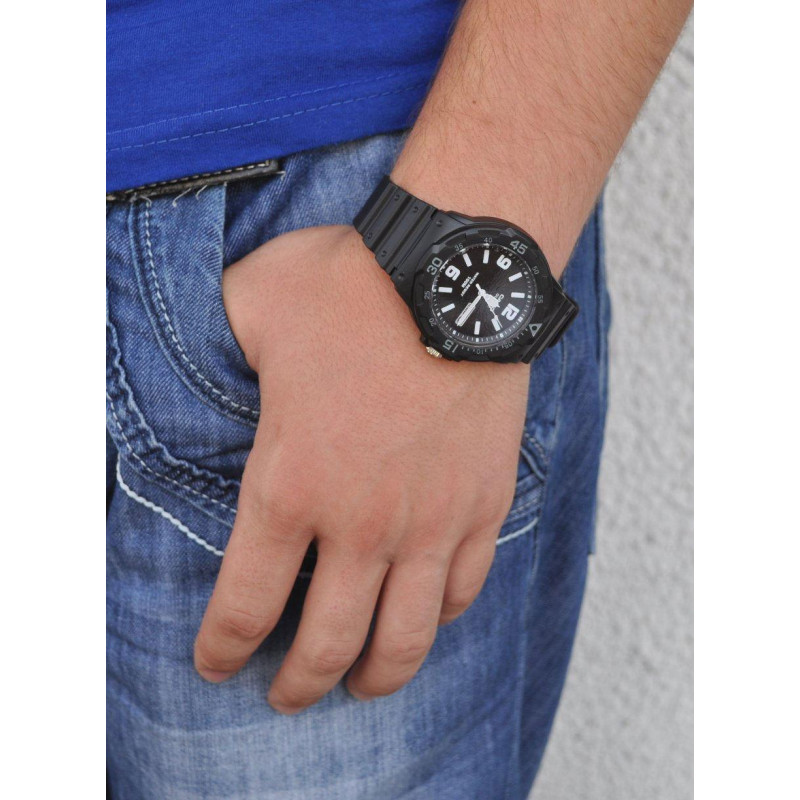 В наручных часах Casio MRW-200H-1B2VEF можно принимать душ, плавать. Рыбалка, бассейн, любая работа, при которой запястье контактирует с водой – вашим наручным часам всё нипочём.