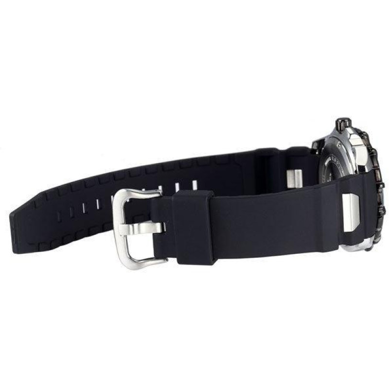 Модель имеет водонепроницаемость 100 м. Корпус выполнен из материала – сталь + PVD. Прочное минеральное стекло надежно защищает циферблат от ударов и других повреждений. Удобный каучук ремешок позволяет часам комфортно сидеть на запястье. Из дополнительных функций имеются: вращающийся безель, дата, секунды.