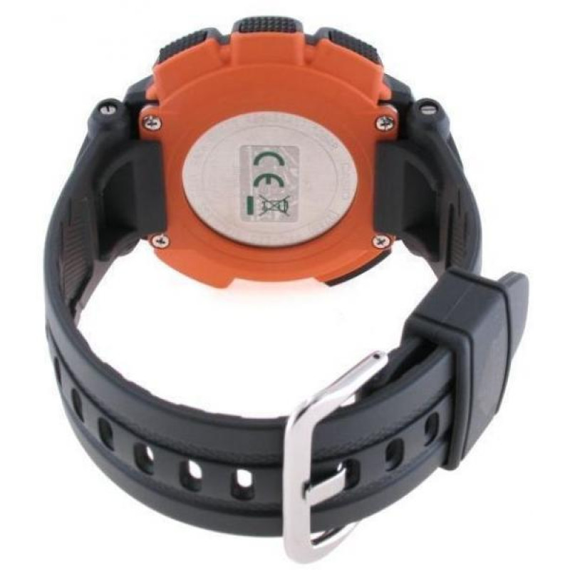 Модель имеет водонепроницаемость 100 м. Корпус выполнен из материала – полимер. Прочное минеральное стекло надежно защищает циферблат от ударов и других повреждений. Удобный полимер ремешок позволяет часам комфортно сидеть на запястье. Из дополнительных функций имеются: 1/100-с секундомер, 12 и 24-часовой формат времени, автоматический календарь, альтиметр, высотомер, дата, день недели, ежедневный сигнал, ежечасный сигнал, измерение температуры, индикатор зарядa элемента питания, компас, мировое время, морозоустойчивые, отображение восхода и захода солнца, полностью автоматическая электролюминесцентная подсветка, солнечная батарея, таймер обратного отсчёта, термометр, функция включения/отключения звука.