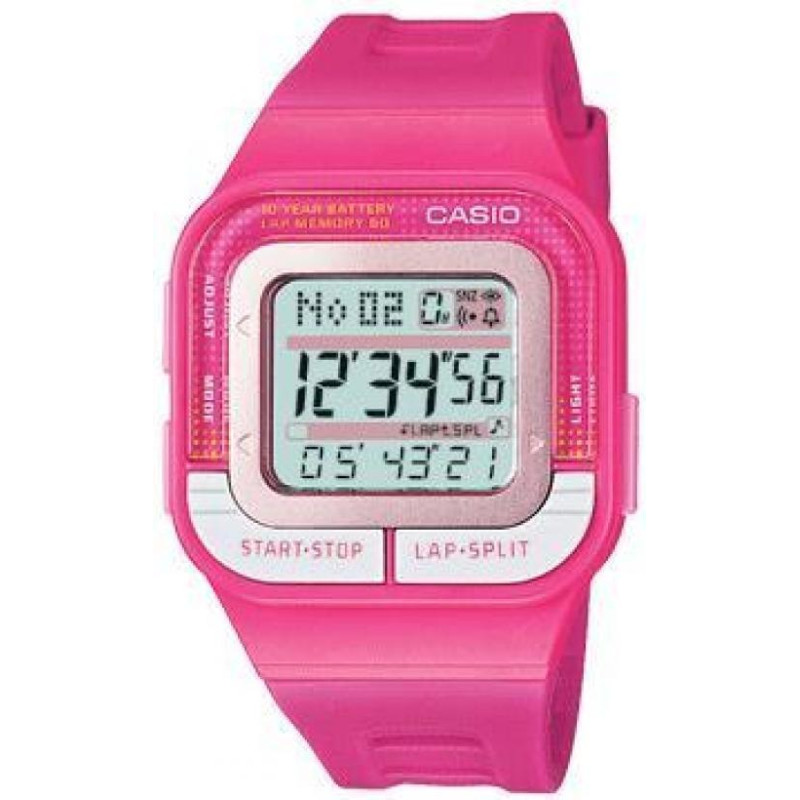 Модель имеет водонепроницаемость 30 м. Корпус выполнен из материала – пластик. Прочное минеральное стекло надежно защищает циферблат от ударов и других повреждений. Удобный полимер ремешок позволяет часам комфортно сидеть на запястье. Из дополнительных функций имеются: 1/100-с секундомер, 5 будильников, двойное время, календарь, светодиодная автоподсветка, таймер, шагомер.