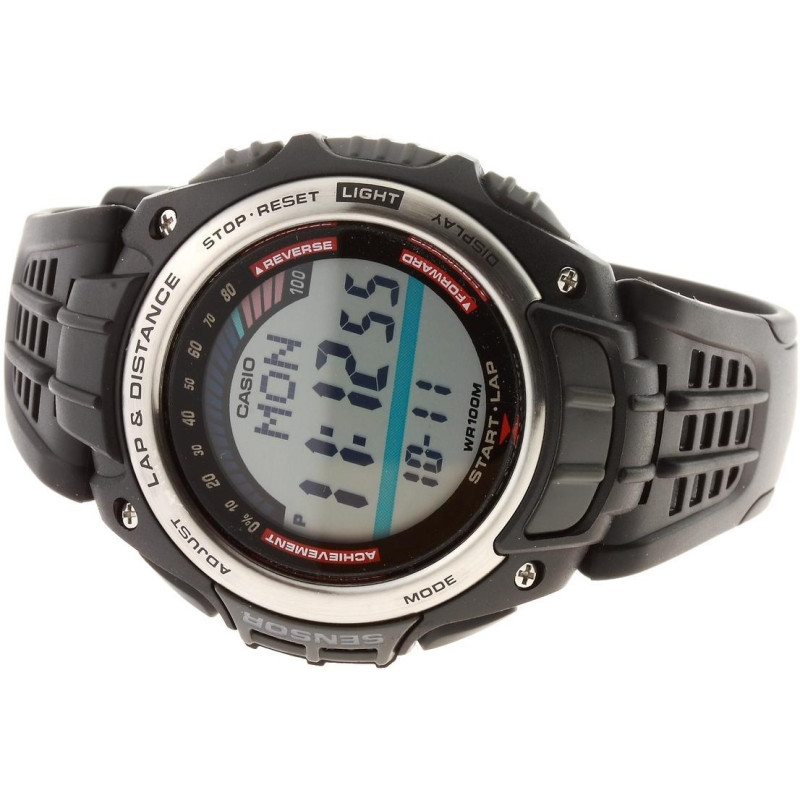 Модель имеет водонепроницаемость 100 м. Корпус выполнен из материала – полимер. Прочное минеральное стекло надежно защищает циферблат от ударов и других повреждений. Удобный полимер ремешок позволяет часам комфортно сидеть на запястье. Из дополнительных функций имеются: 12 и 24-часовой формат времени, автоматический календарь, калориметр, мировое время, мульти-сигнал, секундомер, таймер обратного отсчёта, шагомер.