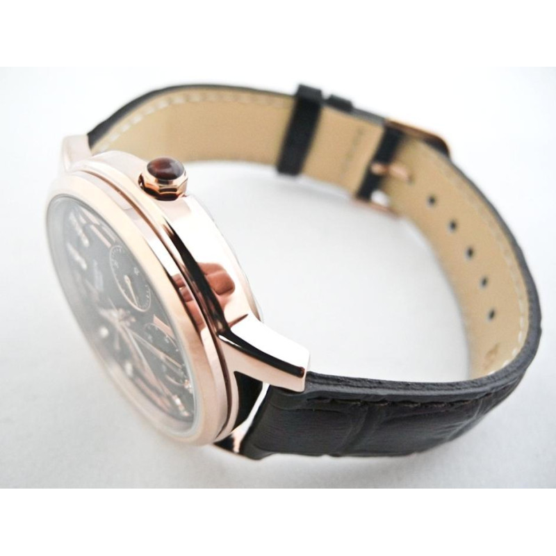 Модель имеет водонепроницаемость 50 м. Корпус выполнен из материала – сталь + PVD. Прочное минеральное стекло надежно защищает циферблат от ударов и других повреждений. Удобный кожаный ремешок позволяет часам комфортно сидеть на запястье. Из дополнительных функций имеются: дата, день недели, дополнительный показатель времени в 24-х часовом формате, минуты, секунды, часы.