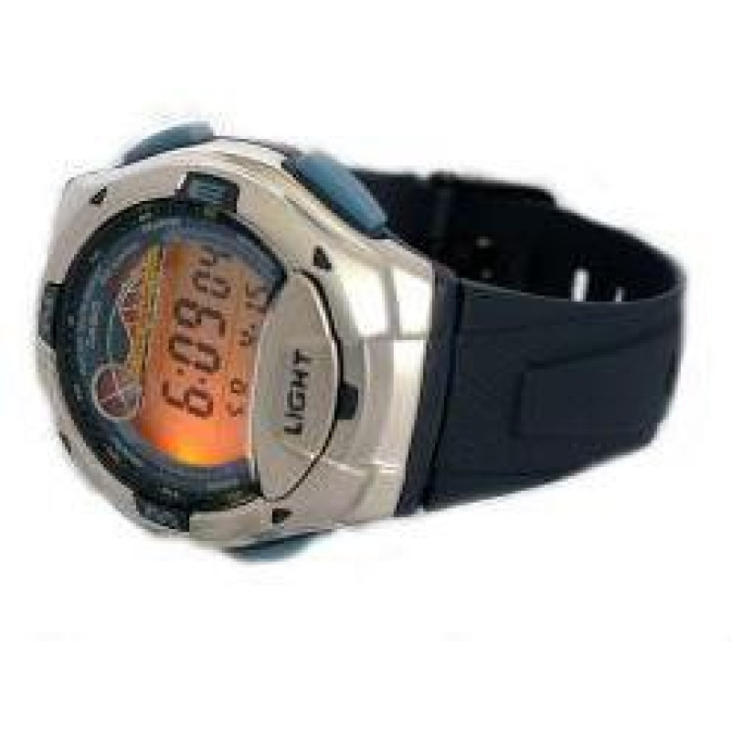 Модель имеет водонепроницаемость 100 м. Корпус выполнен из материала – полимер и сталь. Прочное пластиковое стекло надежно защищает циферблат от ударов и других повреждений. Удобный полимер ремешок позволяет часам комфортно сидеть на запястье. Из дополнительных функций имеются: 12 и 24-часовой формат времени, автоматический календарь, двойное время, мульти-сигнал, отображение возраста и фазы луны, отображение таблицы приливов-отливов, пресет-таймер, светодиодная автоподсветка, секундомер, функция повтора сигнала, яхт-таймер.