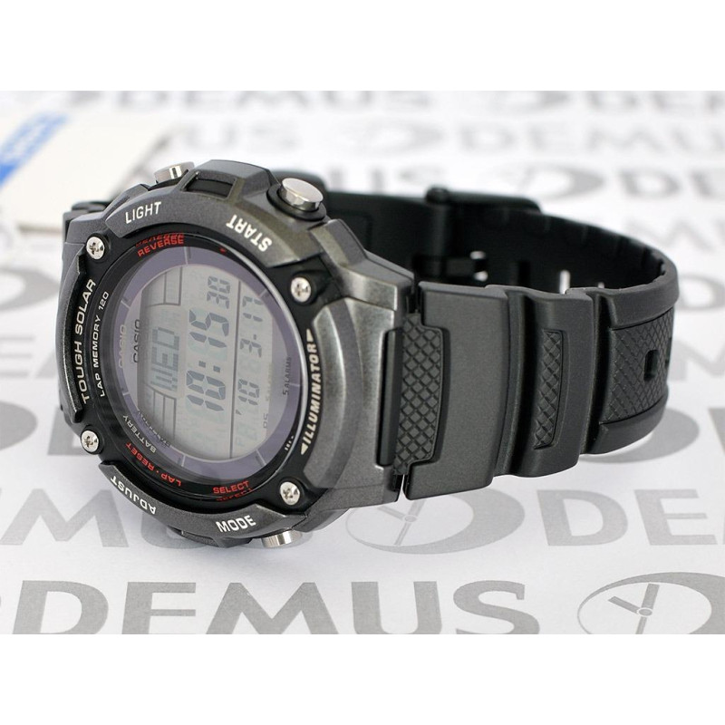 Модель имеет водонепроницаемость 100 м. Корпус выполнен из материала – пластик. Прочное минеральное стекло надежно защищает циферблат от ударов и других повреждений. Удобный полимер ремешок позволяет часам комфортно сидеть на запястье. Из дополнительных функций имеются: 12 и 24-часовой формат времени, 5 будильников, GMT, автоматический календарь, секундомер, солнечная батарея, таймер обратного отсчёта.