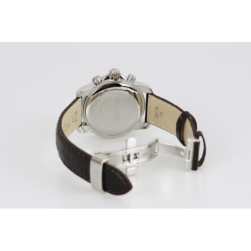 Модель имеет водонепроницаемость 100 м. Корпус выполнен из материала – сталь. Прочное сапфировое стекло надежно защищает циферблат от ударов и других повреждений. Удобный кожаный ремешок позволяет часам комфортно сидеть на запястье. Из дополнительных функций имеются: дата, тахиметр, хронограф.