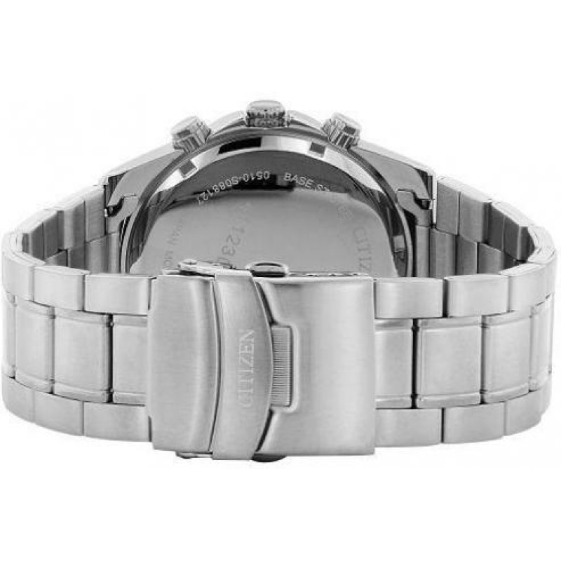 Модель имеет водонепроницаемость 100 м. Корпус выполнен из материала – сталь. Прочное минеральное стекло надежно защищает циферблат от ударов и других повреждений. Удобный стальной браслет позволяет часам комфортно сидеть на запястье. Из дополнительных функций имеются: дата, секунды, хронограф.