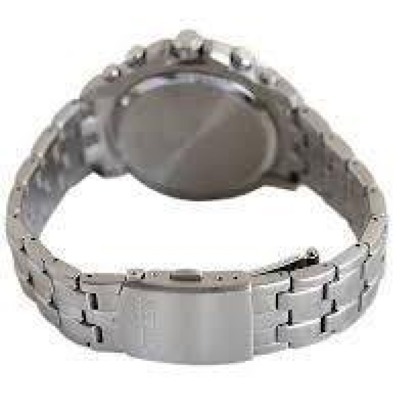Модель имеет водонепроницаемость 100 м. Корпус выполнен из материала – сталь. Прочное сапфировое стекло надежно защищает циферблат от ударов и других повреждений. Удобный стальной браслет позволяет часам комфортно сидеть на запястье. Из дополнительных функций имеются: дата, дополнительный показатель времени в 24-х часовом формате, солнечная батарея, хронограф.