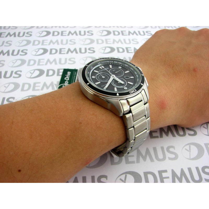 Модель имеет водонепроницаемость 100 м. Корпус выполнен из материала – сталь + PVD. Прочное минеральное стекло надежно защищает циферблат от ударов и других повреждений. Удобный стальной браслет позволяет часам комфортно сидеть на запястье. Из дополнительных функций имеются: дата, дополнительный показатель времени в 24-х часовом формате, минуты, секунды, солнечная батарея, тахиметр, хронограф, часы.