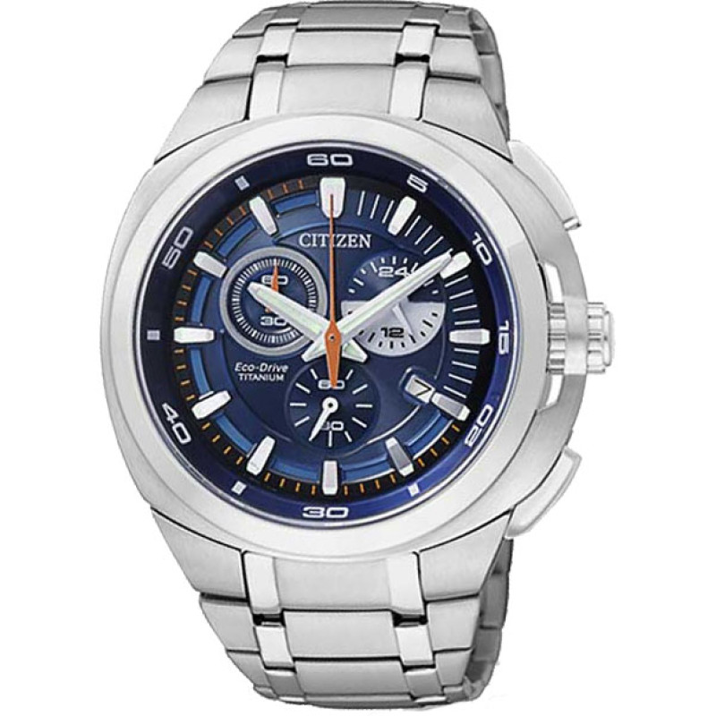Модель имеет водонепроницаемость 100 м. Корпус выполнен из материала – титан. Прочное сапфировое стекло надежно защищает циферблат от ударов и других повреждений. Удобный титановый браслет позволяет часам комфортно сидеть на запястье. Из дополнительных функций имеются: дата, дополнительный показатель времени в 24-х часовом формате, солнечная батарея, хронограф.