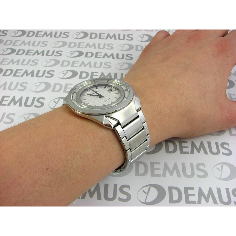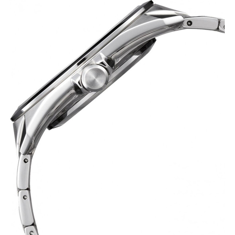 Модель имеет водонепроницаемость 50 м. Корпус выполнен из материала – сталь. Прочное минеральное стекло надежно защищает циферблат от ударов и других повреждений. Удобный стальной браслет позволяет часам комфортно сидеть на запястье. Из дополнительных функций имеются: дата, секунды, солнечная батарея.